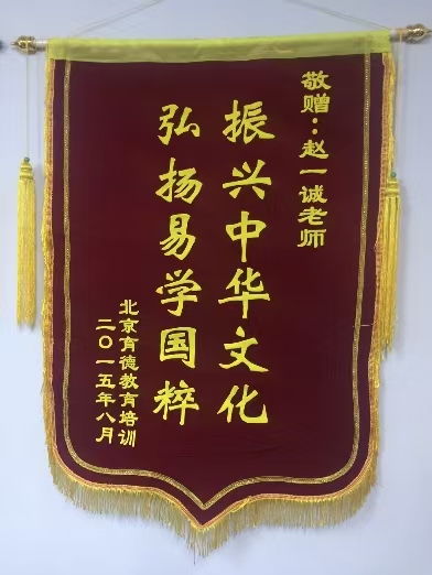 振兴中华文化  弘扬易学国粹    2015年北京育德教育敬赠赵一诚老师锦旗