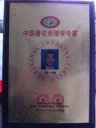 2010年首届中国易学博览学术研讨会曁中国传统文化高峰论坛授予赵一诚老师中国著名命理学专家称号